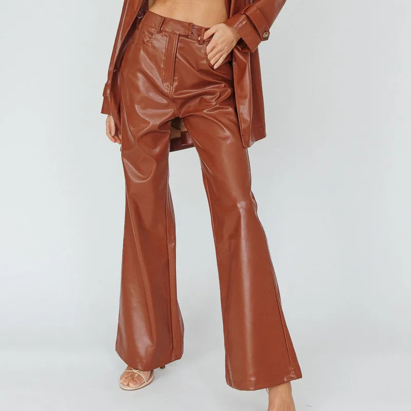 Danica Wide-Leg Leather Pants
