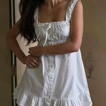 White Linen Summer Button Front Mini Dress
